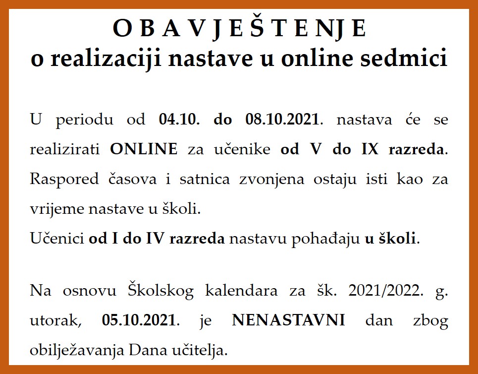 Okvirni kalendar pisanih provjera znanja za I polugodište u školskoj 2025/2026. godini